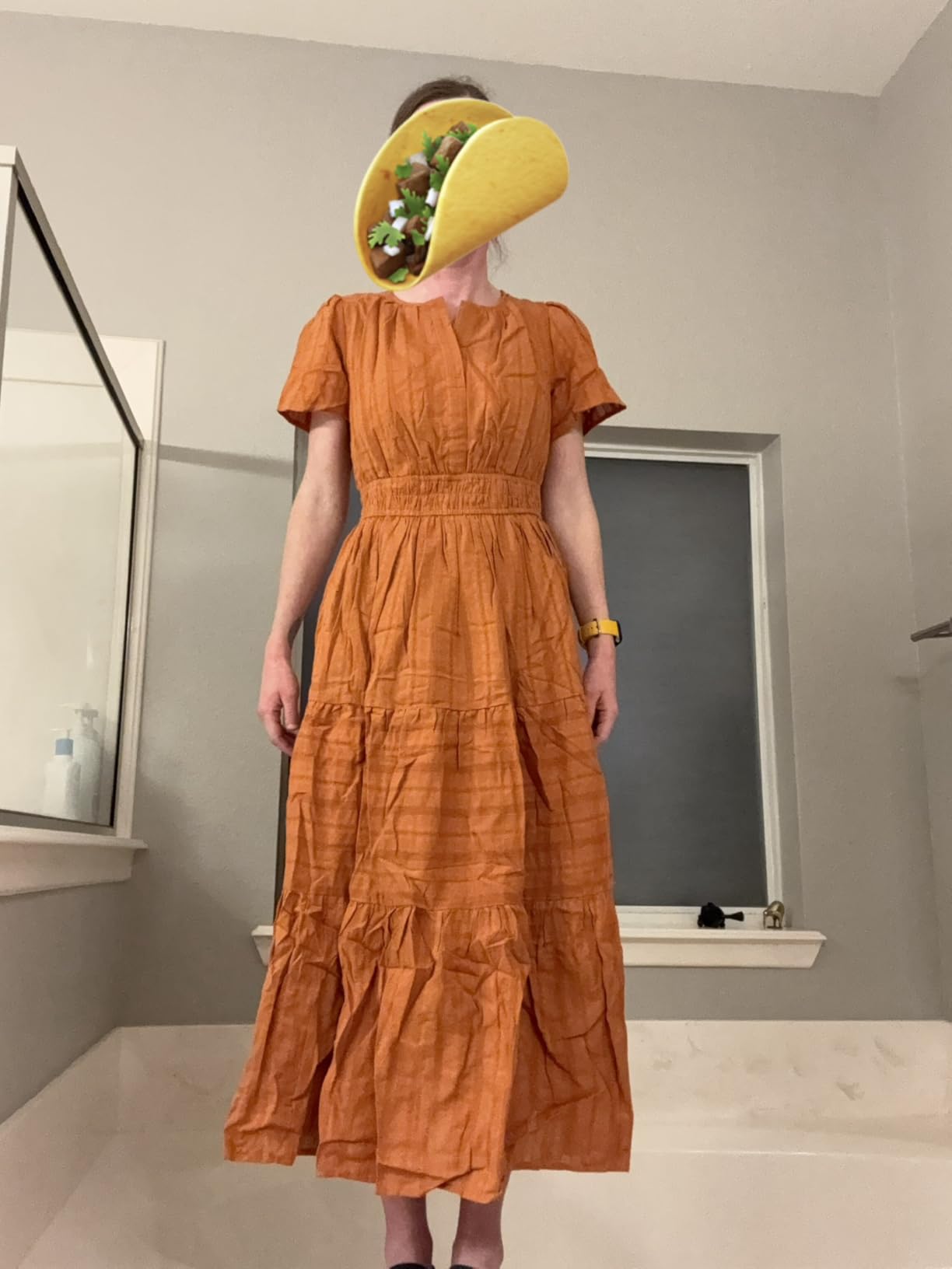 “I wore this to a family gathering and felt so comfortable the whole time. It fits really nicely at the waist and the fabric feels light but still looks dressy.”